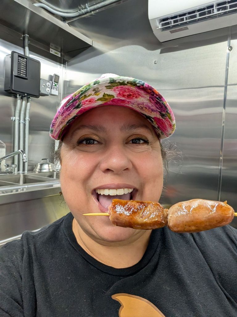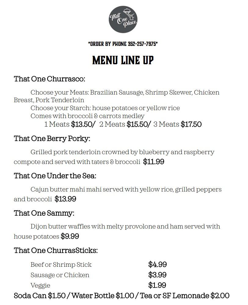 ChurrasSticks are the hot new items! Choose Beef, Chicken, shrimp, sausage or veggies on a stick. Delicious! We also have the full menu with entrees and desserts.