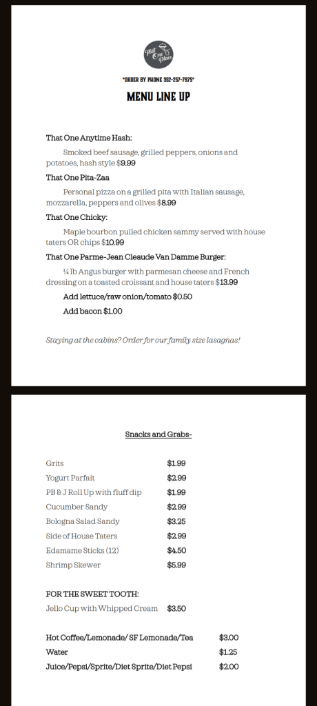 Will be seeing you this sunday at Blue Grotto Dive Resort with this menu: