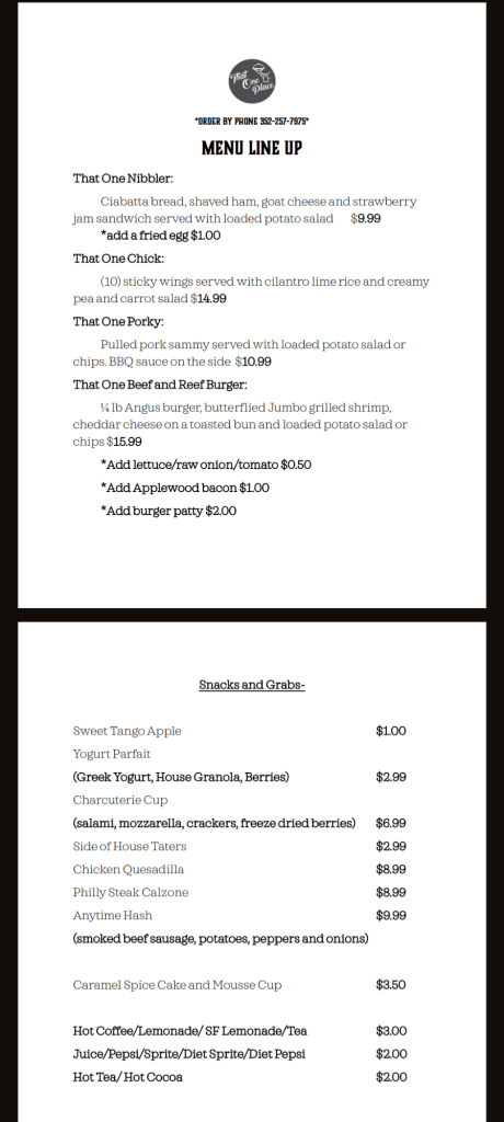 See yall at Blue Grotto Dive Resort, Williston Florida Saturday 4.18.26 only with this menu!